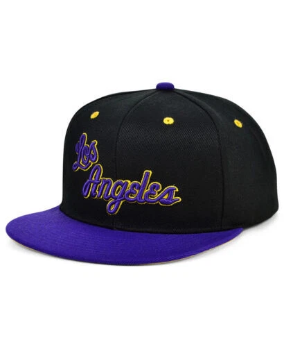 Gorra Mitchell & Ness Snapback de Los Angeles Lakers - Negra con logotipo blanco Nueva con etiquetas